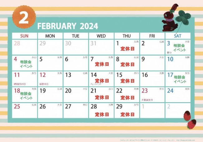 【2024年2月カレンダー】イベントと定休日のお知らせ
